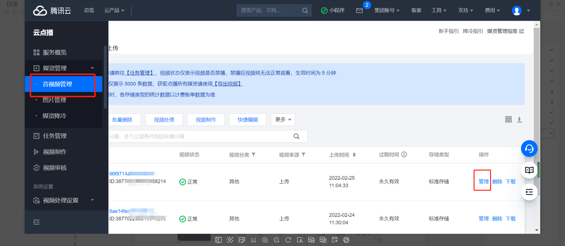 3.1.1点击左侧的“视频管理”