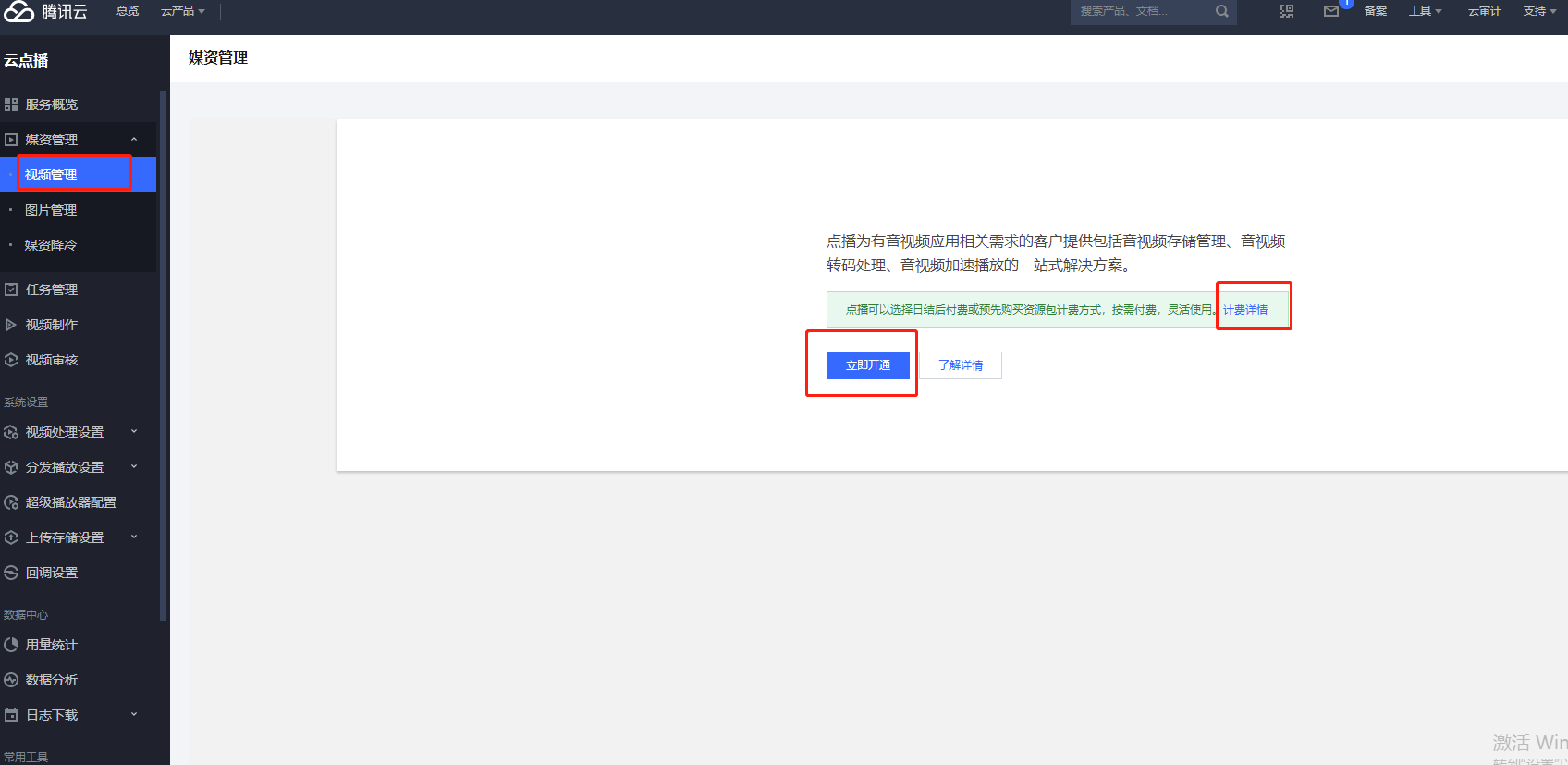 2.2 点击立即开通,在开通之前可以点击计费详情,可根据实际需求来选择套餐包
